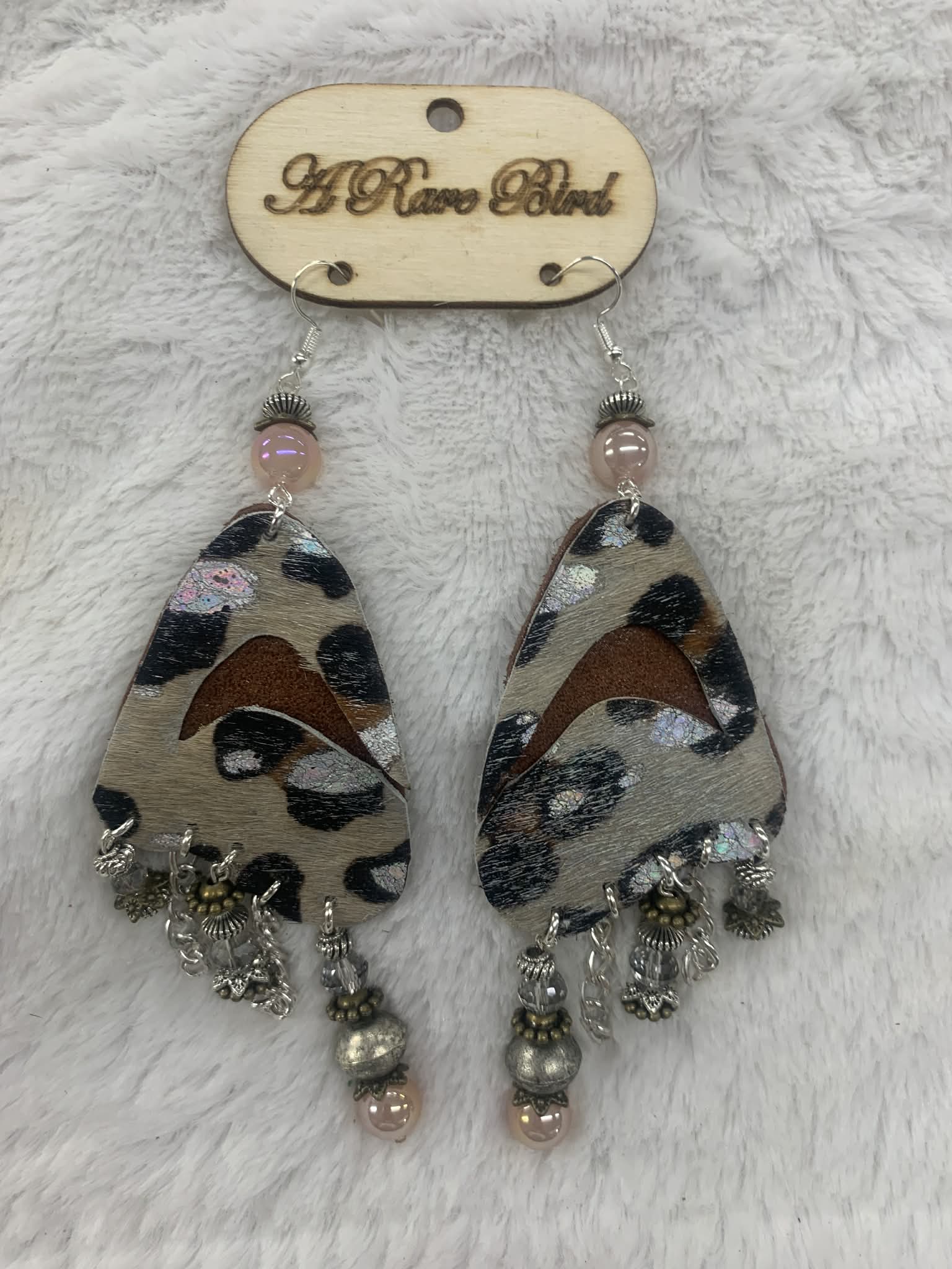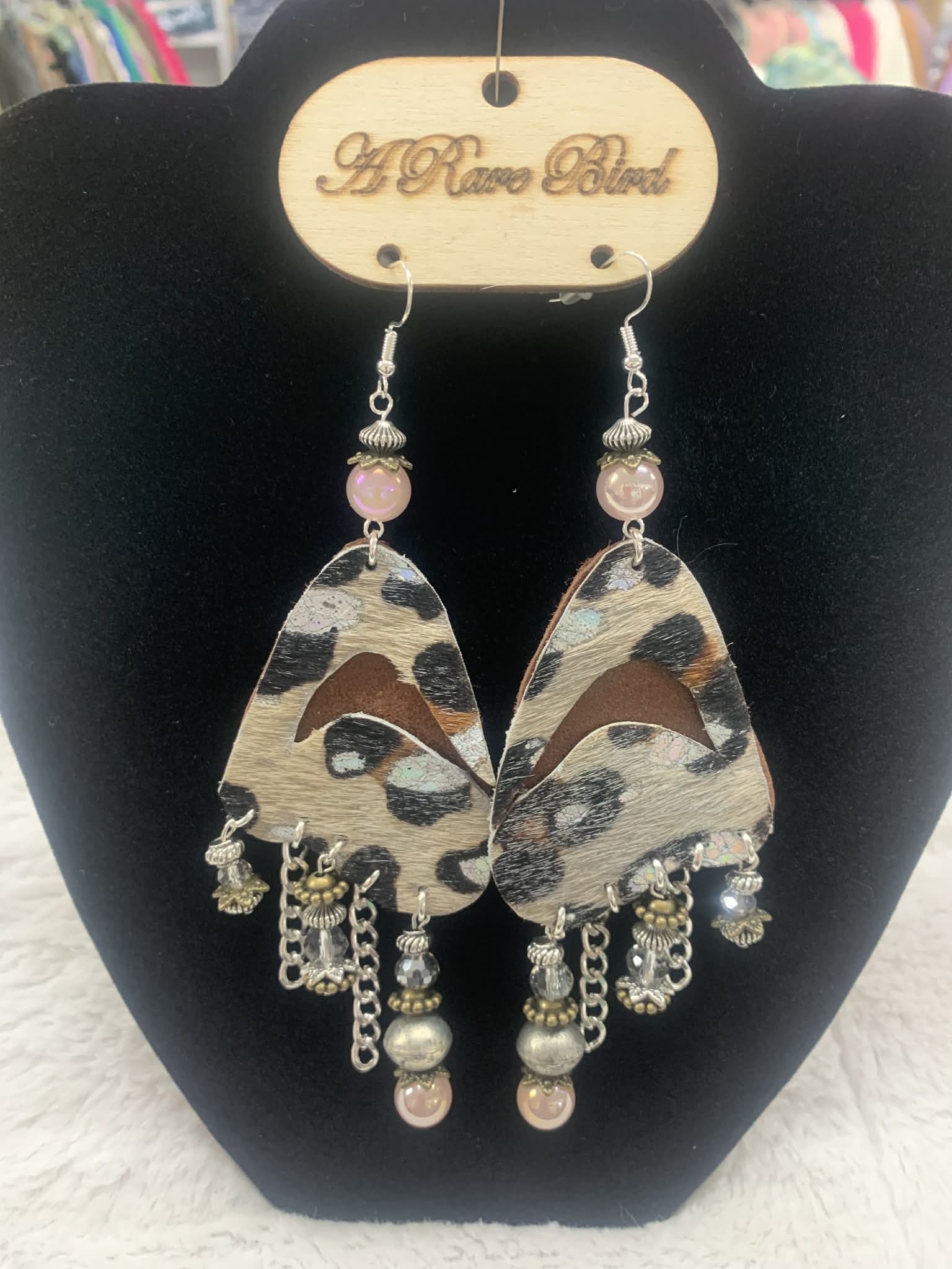Spot the style with these whimsical dangling earrings featuring a bold leopard leather paired with delicate pink pearl and silver accents. Perfect for adding a touch of wild elegance to any outfit, these playful pieces blend animal print attitude with feminine sophistication. A rare find that celebrates your unique fashion sense.