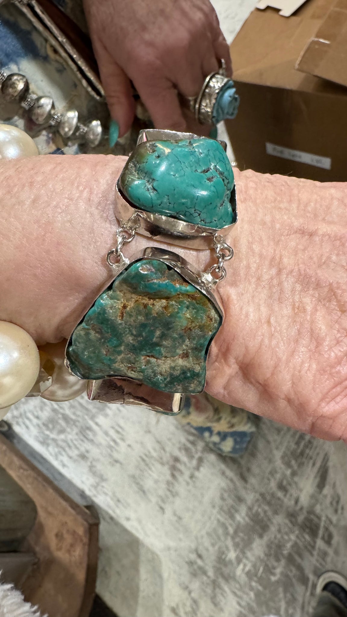 A Rare Bird—Turquoise in Sterling Silver Bracelet Catch a one-of-a-kind treasure with this playful sterling silver bracelet, where a vibrant turquoise stone takes center stage. Each piece is uniquely crafted, making it a conversation starter that celebrates individuality. The cool shimmer of sterling silver pairs beautifully with the warm, earthy tones of turquoise, creating a bracelet that works as a standalone statement or layered with your favorite pieces. Perfect for gifting to someone who appreciates artisan jewelry with personality—or keeping it all for yourself.