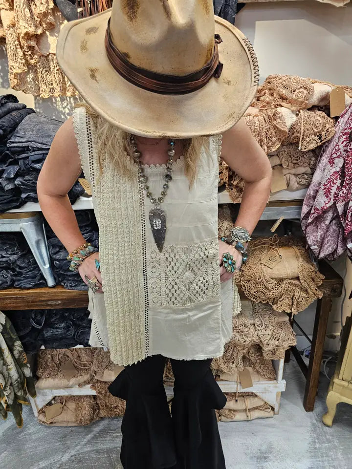 Slip into something delightfully vintage with this tea-colored lace cami that feels like a secret treasure from a bygone era. The delicate lace detailing adds an effortless touch of romance and elegance to any outfit—layer it under sheer tops, wear it solo on warmer days, or style it as a statement piece. Soft, breathable, and undeniably charming, this rare find brings a nostalgic whisper of sophistication to your everyday wardrobe.