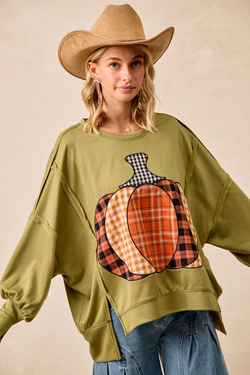 Cozy up in this charming French terry sweatshirt featuring a delightful patchwork design that blends plaid and pumpkin motifs. Perfect for fall adventures, this playful piece brings warmth and whimsy to any little one's wardrobe. The soft, breathable fabric keeps them comfortable all season long, while the cheerful pattern adds a touch of seasonal fun to everyday outfits.