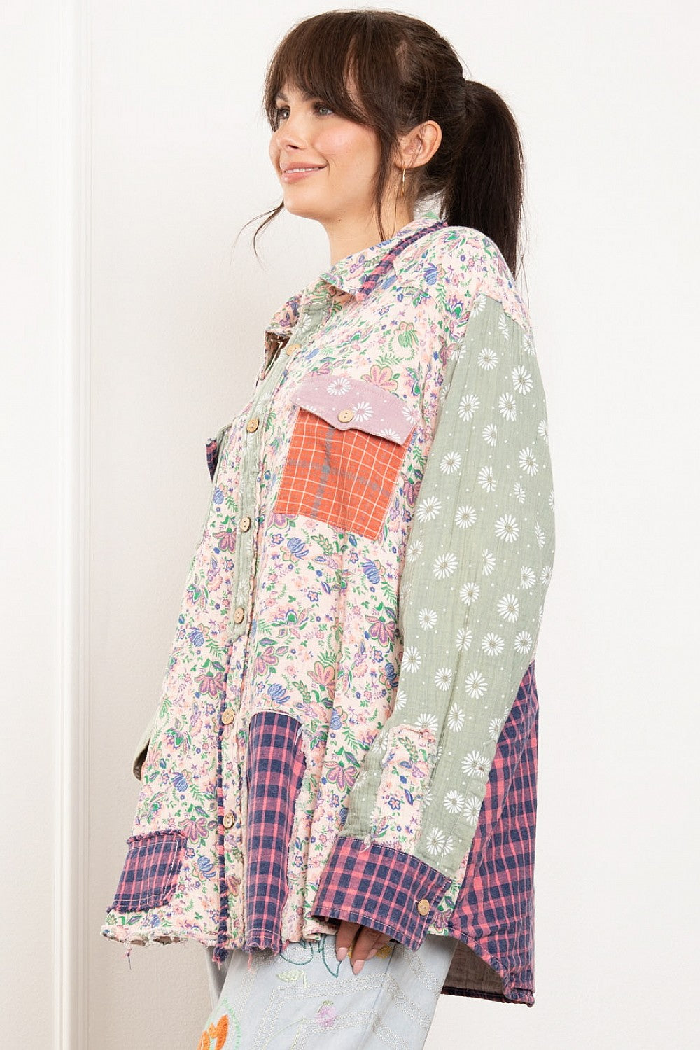 Elevate your wardrobe with this eye-catching patchwork shirt that's bursting with color and personality. Featuring a vibrant mix of printed patches in multiple hues, this Blue Velvet piece is perfect for making a bold statement. The unique patchwork design adds texture and visual interest, while the relaxed fit ensures all-day comfort. Whether you're dressing up for a night out or keeping it casual, this shirt brings fun and flair to any outfit. A playful essential that celebrates individuality and style.