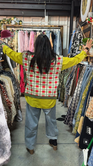 Get festive with our Christmas Plaid Pattern Side Tied Sweater Vest! This unique vest adds a touch of whimsy to your holiday wardrobe. The cozy sweater material and side tie feature make it both comfortable and stylish. Perfect for any seasonal celebration.