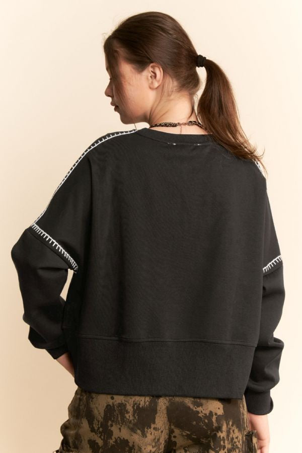 Davi & Dani - Contrast Stitch Crewneck Sweatshirt