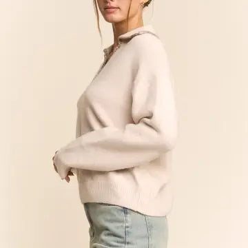Cozy meets cute in the Davi & Dani Cream Granny V Neck Turtleneck Sweater Top. Its soft cream fabric and vintage-inspired v-neck add a playful twist to a classic look, while the turtleneck keeps you warm and stylish. Perfect for layering or standing out on its own, this sweater is your new go-to for cozy days with a touch of charm.