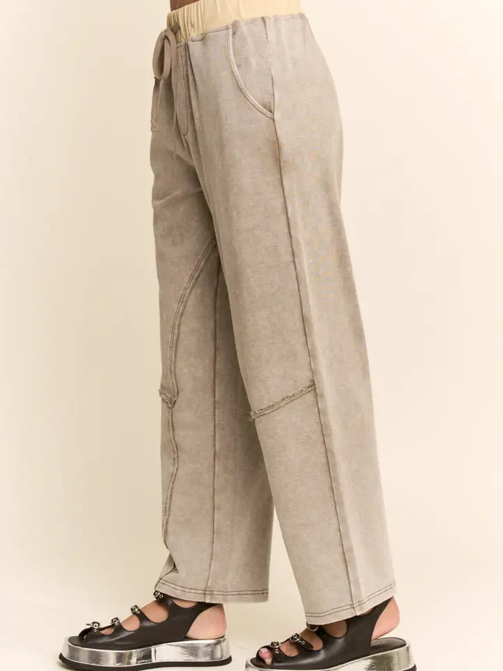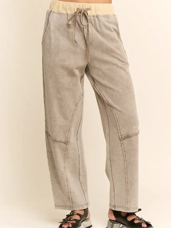 Effortlessly chic meets comfort in these Davi & Dani barrel pants. Crafted from soft washed French terry, they feature a striking contrast waist detail that adds visual interest to your everyday look. The relaxed barrel silhouette offers that coveted laid-back vibe while the ash khaki tone pairs seamlessly with almost anything in your closet. Perfect for casual days when you want to look put-together without trying too hard.