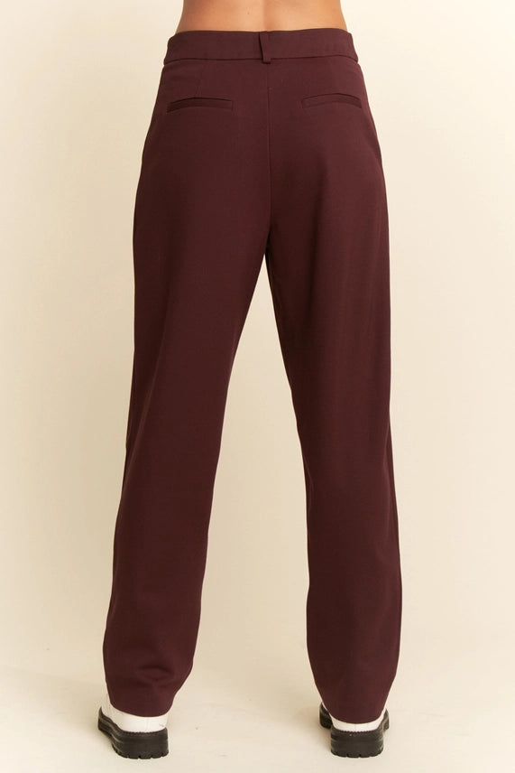 Elevate your everyday style with these chic Davi & Dani straight-fit trousers in rich burgundy. The high-waist silhouette flatters your figure while the wide-leg cut offers effortless comfort and movement. Functional pockets keep your essentials close, and the timeless color pairs beautifully with everything in your wardrobe—from crisp whites to bold jewel tones. Perfect for the office, weekend brunch, or anywhere you want to look polished without trying too hard.