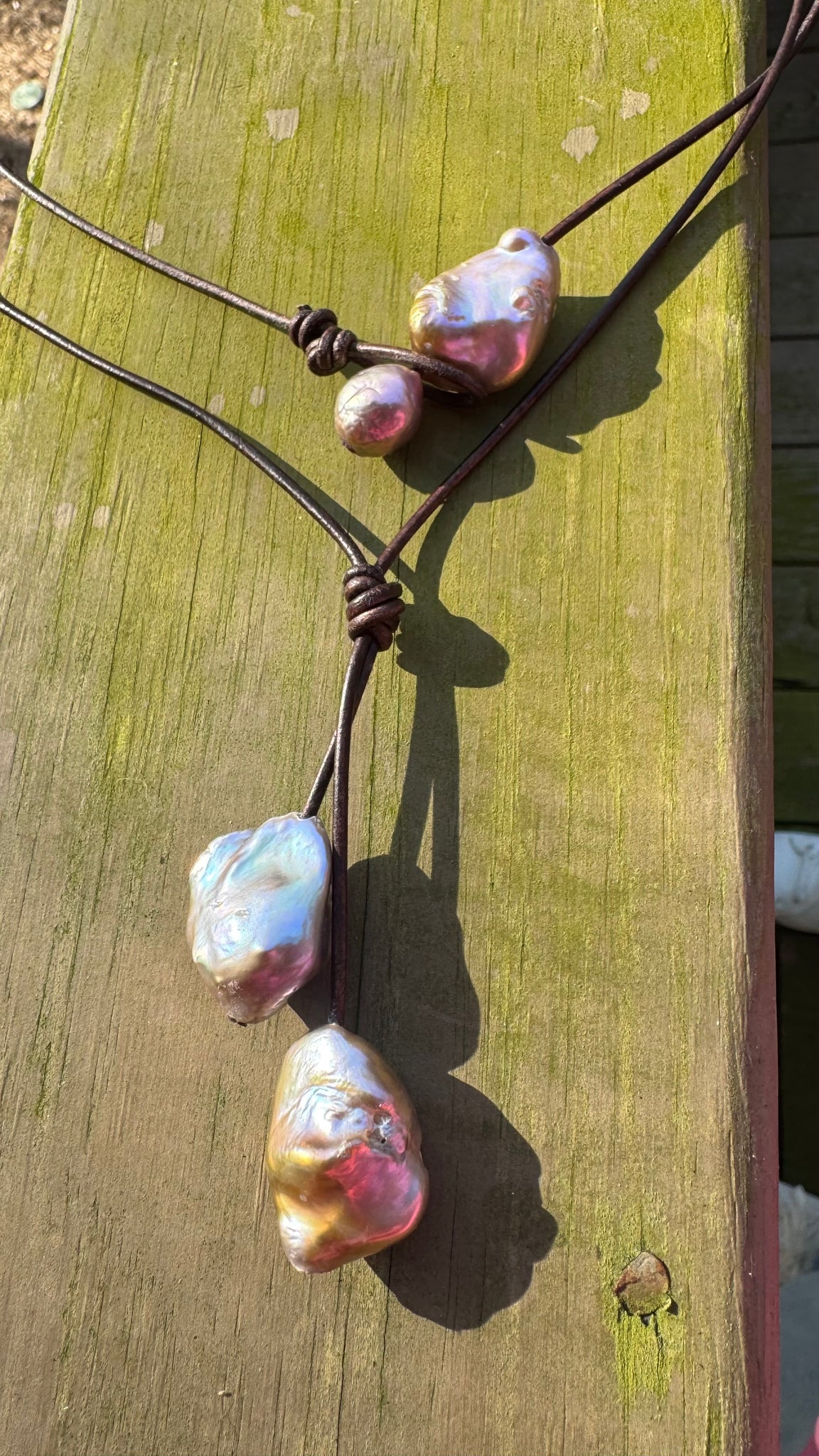 Make a statement with this tropical-inspired necklace featuring two oversized pearl balls in rich gold, green, and silver tones. The lustrous pearls catch the light beautifully, creating dimension and movement with every wear. Perfect for layering or wearing solo, this piece adds instant sophistication to casual and dressed-up looks alike. A versatile accessory that bridges bold style with everyday elegance.