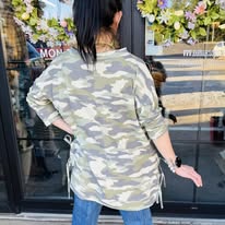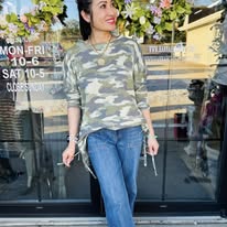 Add a touch of fun to your everyday style with the HC - Camo Bow Tie Everyday Top. Featuring a playful camo pattern and a charming bow tie detail, this top blends casual comfort with a cheeky twist. Perfect for mixing and matching, it brings a unique flair to your daily wardrobe without trying too hard. Easy to wear, hard to forget!