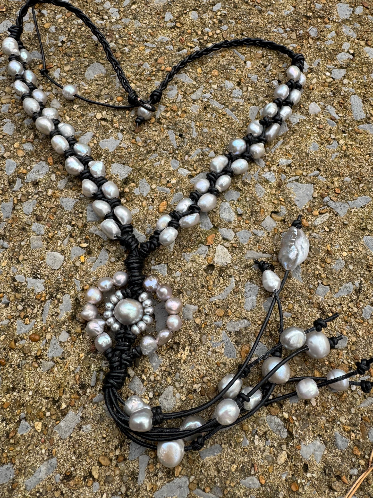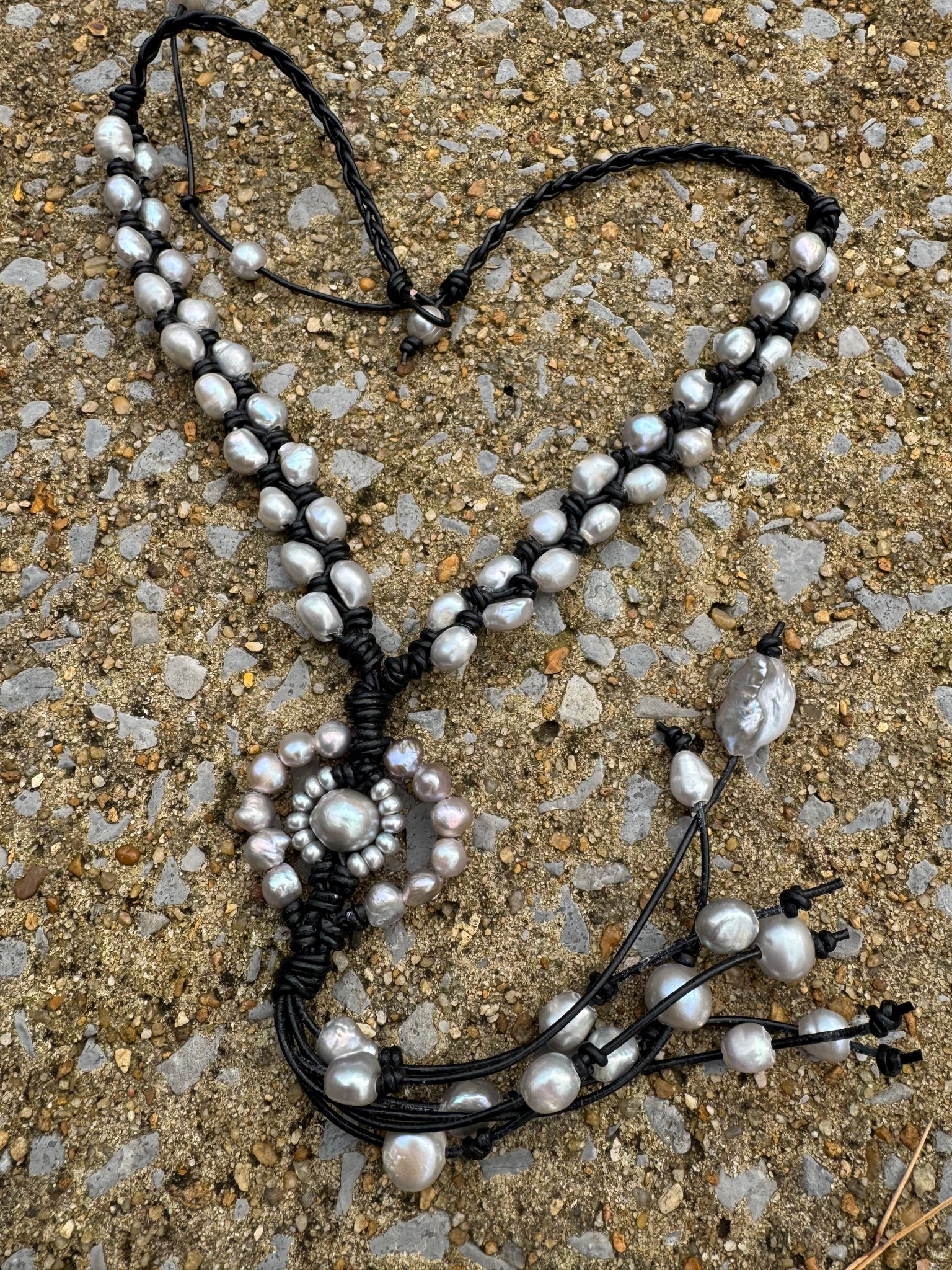 Glam up your look with our HC double strands sunflower silver pearls necklace. This playful piece adds a touch of effortless elegance to any outfit. Embrace your fun side with this quirky and unique accessory. (Necklace length: 18 inches)