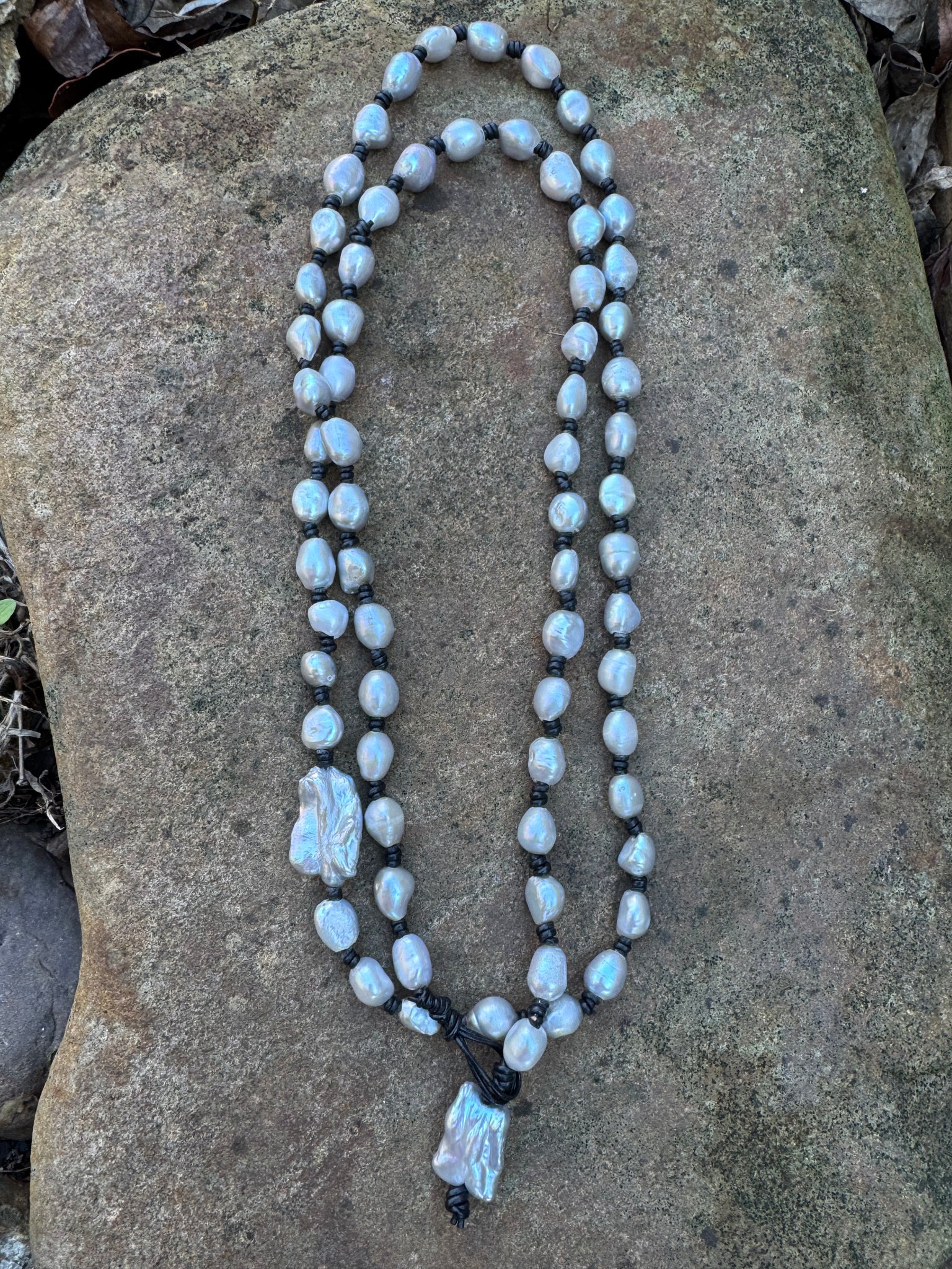 Drape yourself in elegance with this stunning lariat-style necklace featuring lustrous silver pearls. The generous 40" length offers versatile styling options—wear it long and flowing for a modern vibe, or loop it for layered sophistication. Perfect for adding a touch of timeless glamour to any outfit, from casual days to special occasions. The pearl and silver combination brings a fresh, contemporary twist to a classic accessory that never goes out of style.