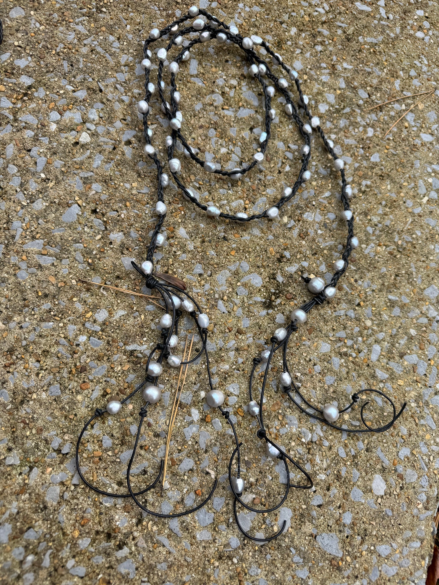 Unleash your inner mermaid with our HC - Silver Pearls Braided Lariat 74" necklace! Featuring a beautiful braided design with silver pearls, this lariat necklace adds a touch of whimsy to any outfit. Perfect for layering or as a statement piece. Always be ready for an underwater adventure!