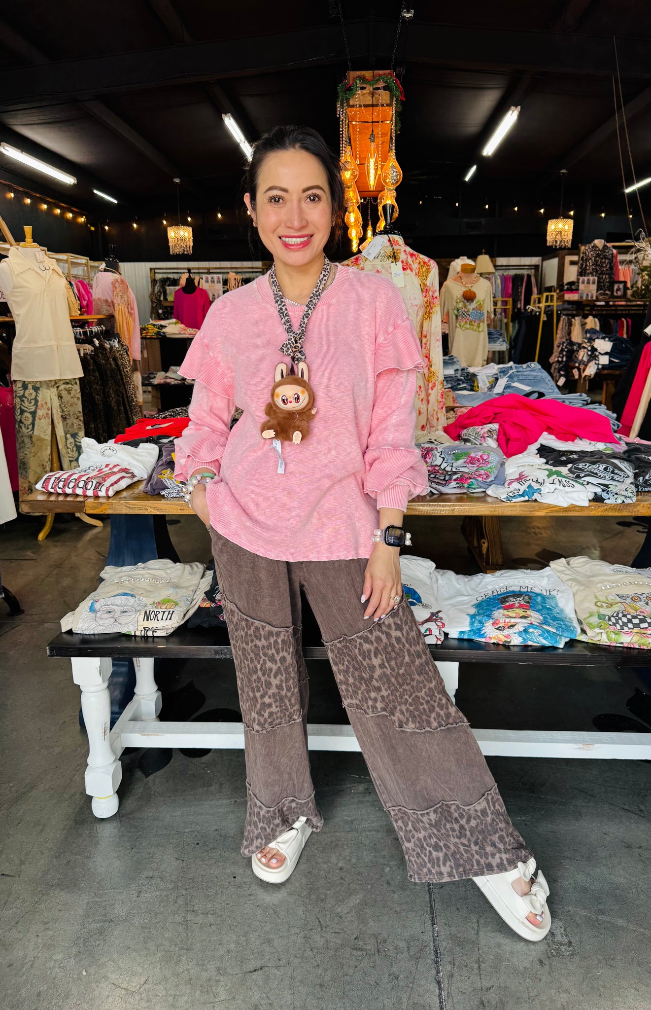 Add a fun twist to your wardrobe with the J. Her = Mineral Wash Melangie Sweater, featuring charming ruffled balloon sleeves and a cozy, worn-in feel.