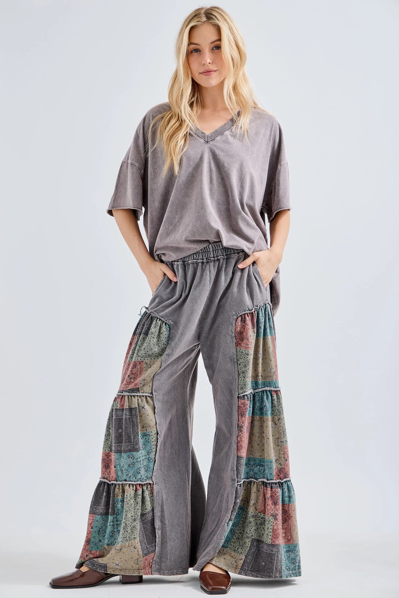 J. Her- Mineral Washed Boho Patch Tiered Wide Pants