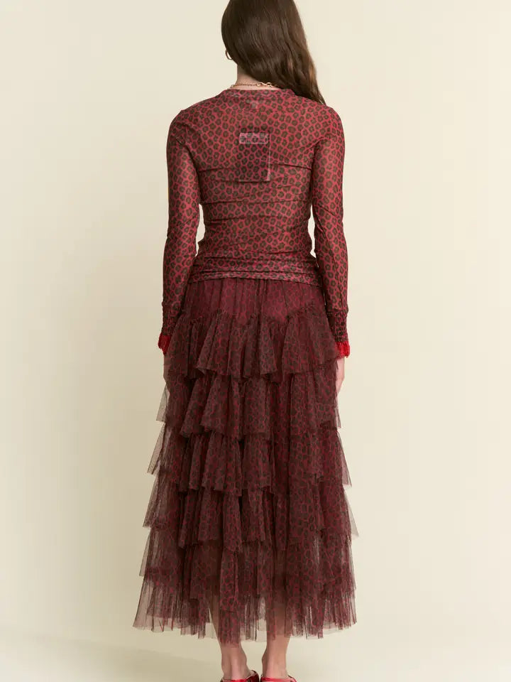 Strut your stuff in this show-stopping maxi skirt that layers on the drama with tiered mesh and a fierce leopard print. Perfect for twirling at parties or making a bold statement wherever you go, this skirt brings the sass and the style. The flowing silhouette keeps things comfy while the wild print ensures all eyes are on you.t