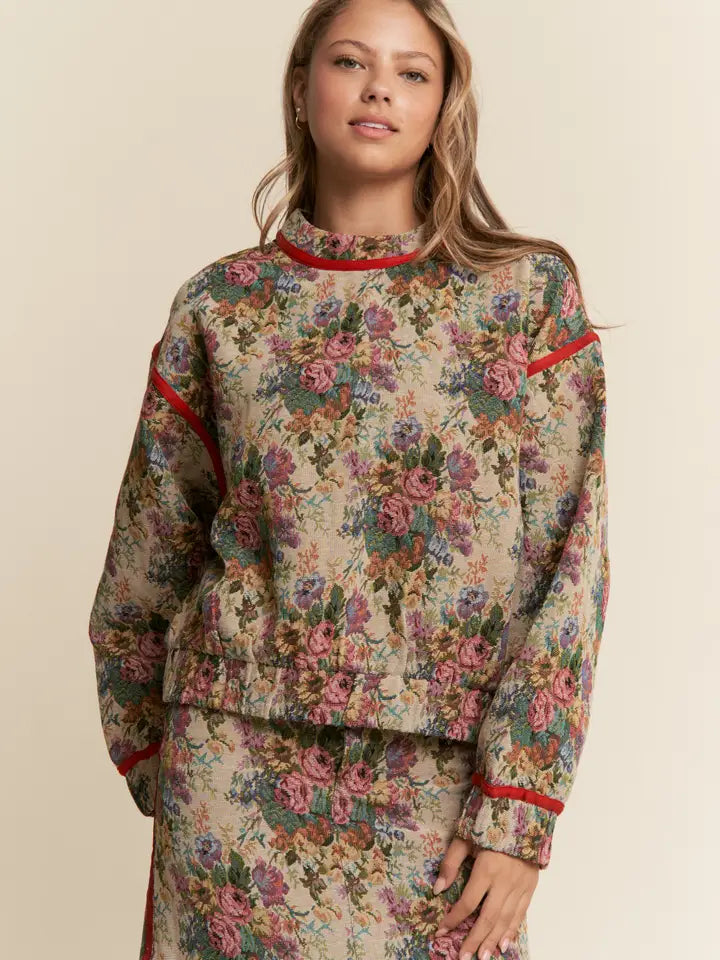 Step into timeless style with this charming floral mock neck top that brings vintage-inspired elegance to your everyday wardrobe. The classic mock neck design offers a polished look, while the delicate floral pattern adds a touch of whimsy and personality. Perfect for layering or wearing solo, this piece effortlessly transitions from casual outings to more put-together occasions. A wardrobe essential that celebrates retro charm with modern versatility.