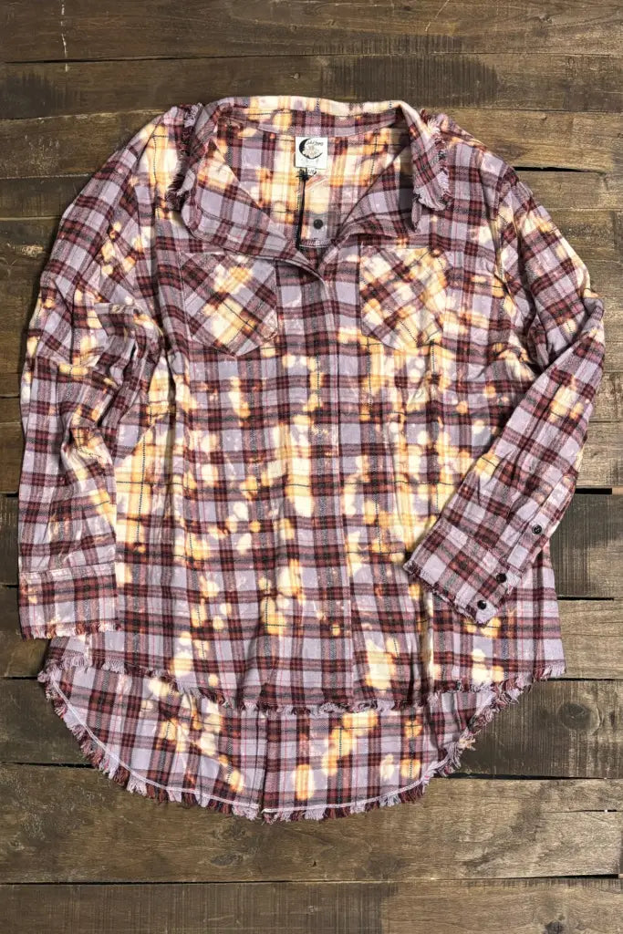 Wrap yourself in the playful charm of the Jaded Gypsy Crisp Morning Air Flannel, available in lively Emerald and Black or soft Lilac—perfect for adding a fresh, fun touch to your everyday look.