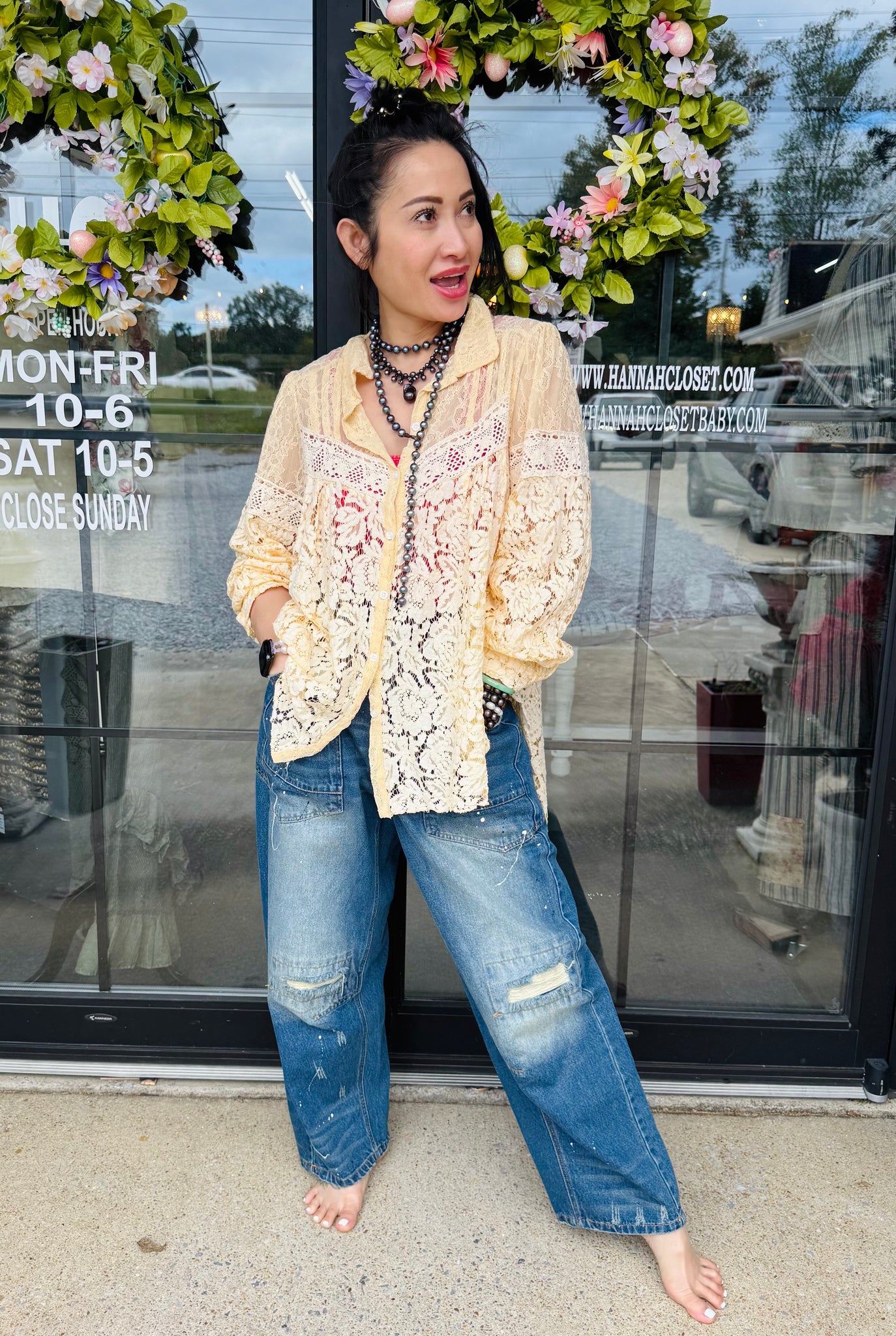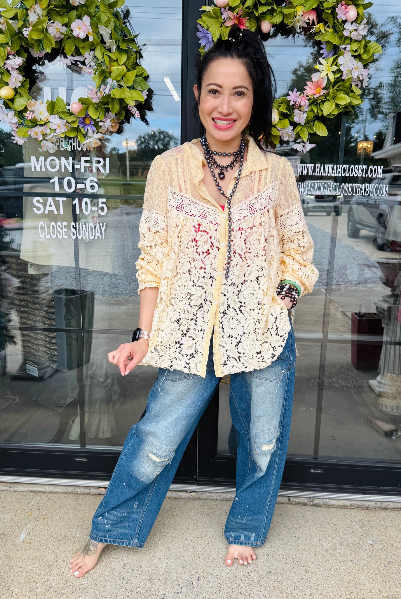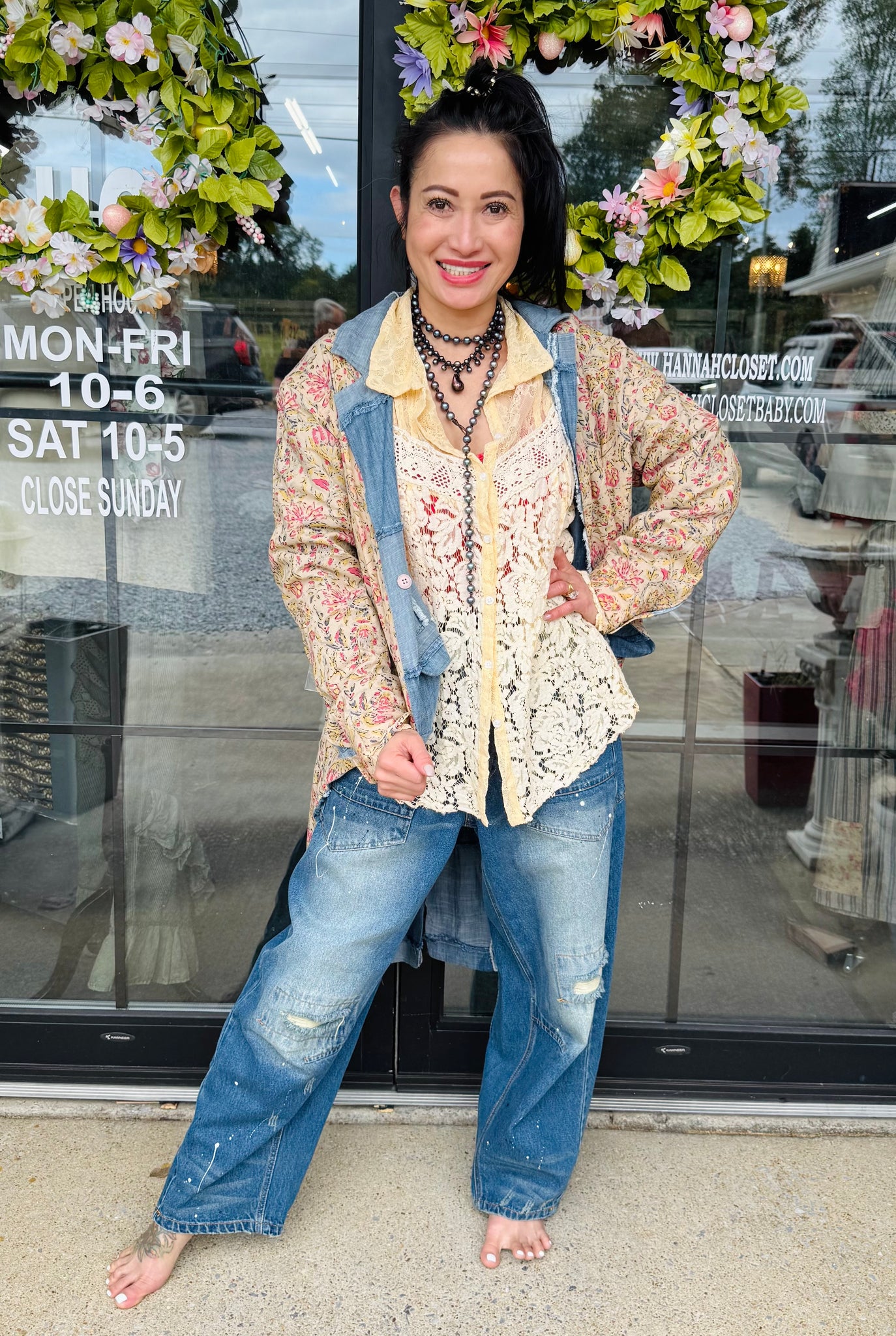 Step into the spotlight with the Jaded Gypsy Floral Medley Shirt—a playful burst of floral lace charm that brightens up your style with every wear.