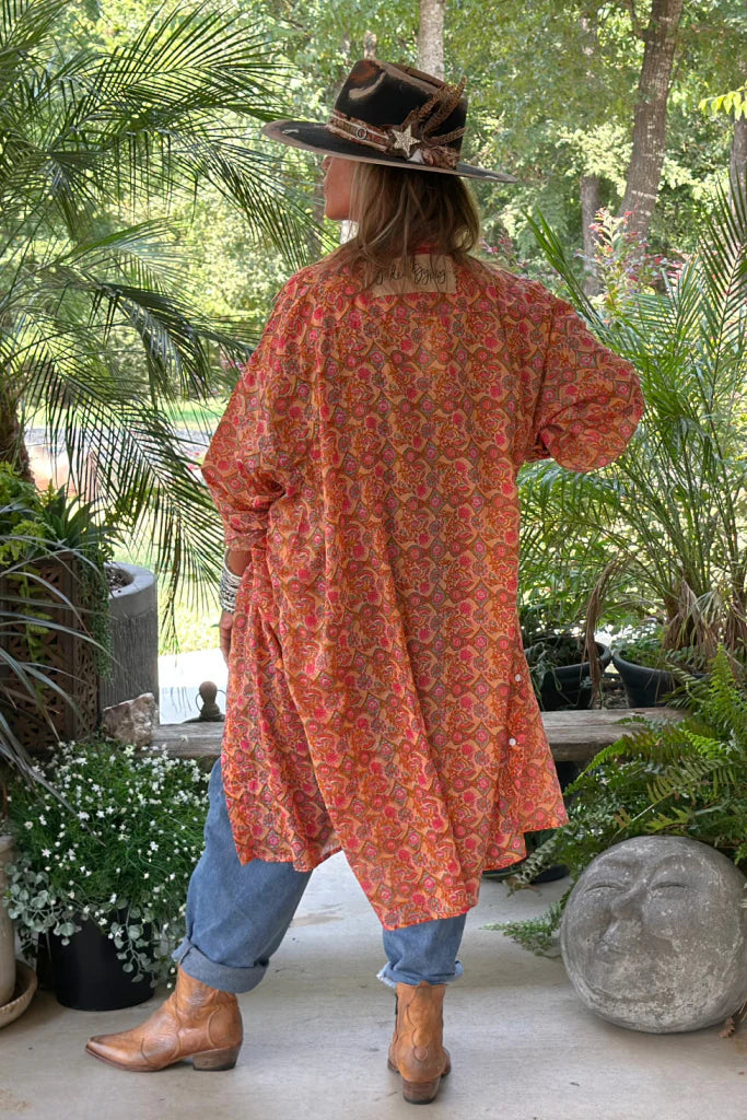 Twirl through your day in this charming peach floral duster from Jaded Gypsy. The Meadow Strolls design captures effortless bohemian style with delicate blooms that dance across lightweight fabric. Perfect for layering over your favorite outfits, this versatile piece transitions seamlessly from casual strolls to relaxed gatherings. Embrace that free-spirited vibe and let your wardrobe wander wherever your heart desires.