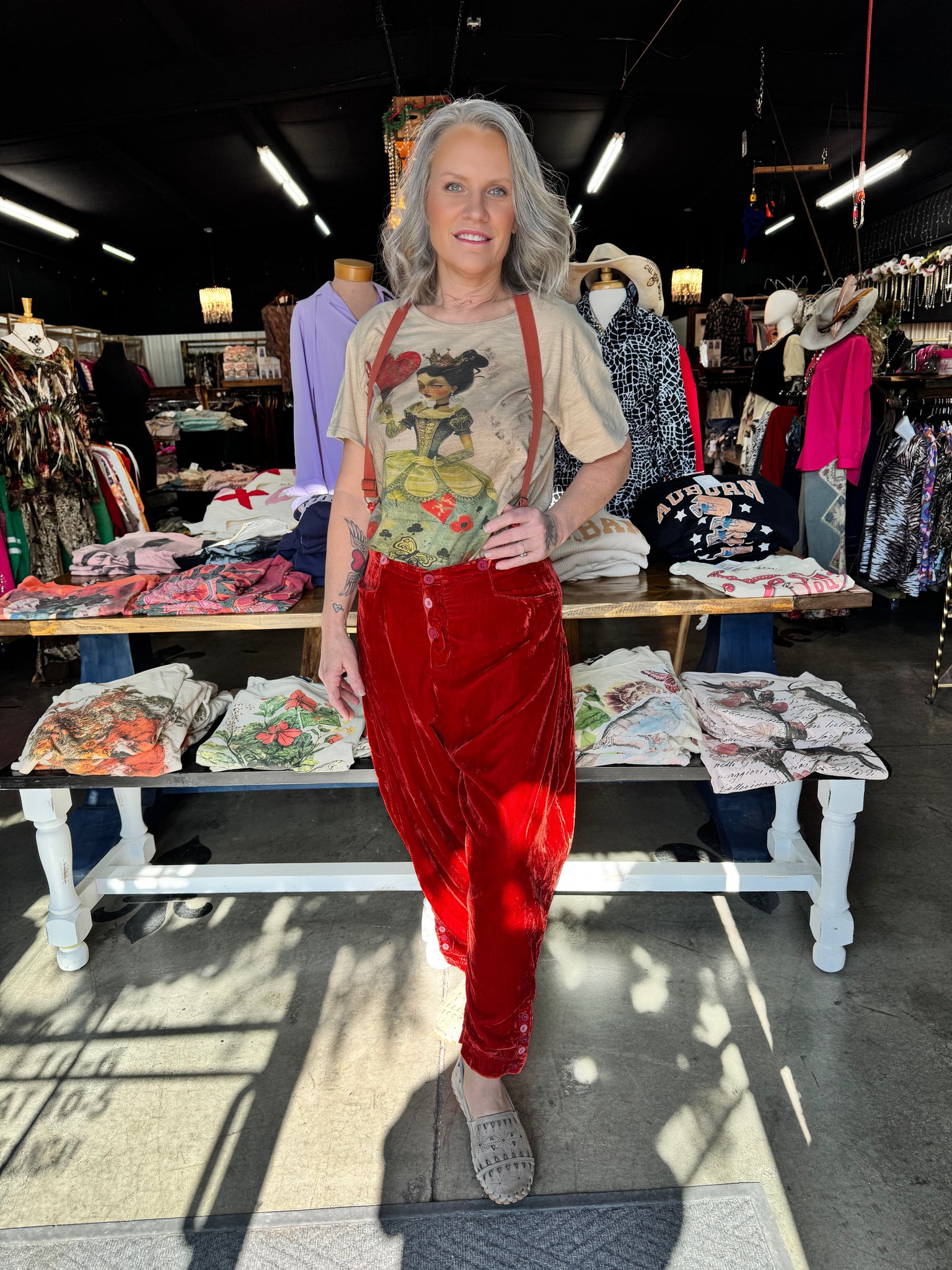 # Jaded Gypsy - Moon Dance Tee - Queen Of Heart Dance under the moonlight in this enchanting Moon Dance Tee from Jaded Gypsy's Queen Of Heart collection. Designed for those who embrace their wild, free-spirited side, this tee blends celestial vibes with bold attitude. Perfect for layering or wearing solo, it's your go-to piece for making a statement wherever the night takes you. Comfort meets cosmic cool in every wear.
