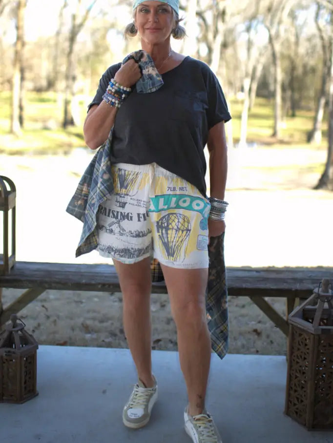 The Moon Dance V-Neck Tee by Jaded Gypsy comes in two sizes: S/M with a 22" bust, 19" shoulder, and 24" length, and L/XL featuring a 23" bust, 20" shoulder, and 26" length. Perfect for dancing under the stars with a comfy fit!
