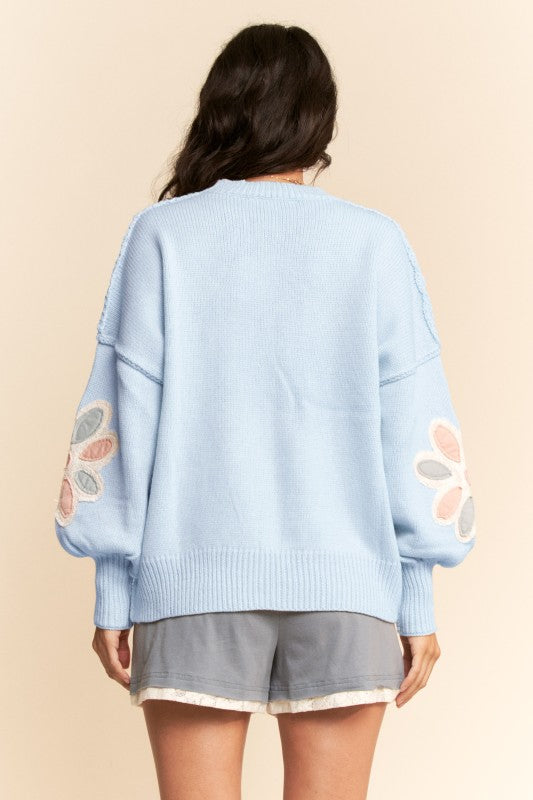 Davi & Dani - Multi Floral Patchwork Long Sleeve Sweater Top