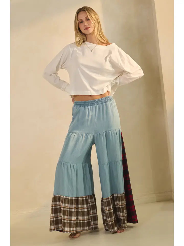 Mix and match style with these vibrant color block tiered pants! Featuring bold contrasting sections and playful layered tiers, they're perfect for adding personality to any outfit. The dynamic color blocking creates visual interest while the tiered design offers movement and dimension. Ideal for THOSE who love to stand out and express their unique fashion sense.