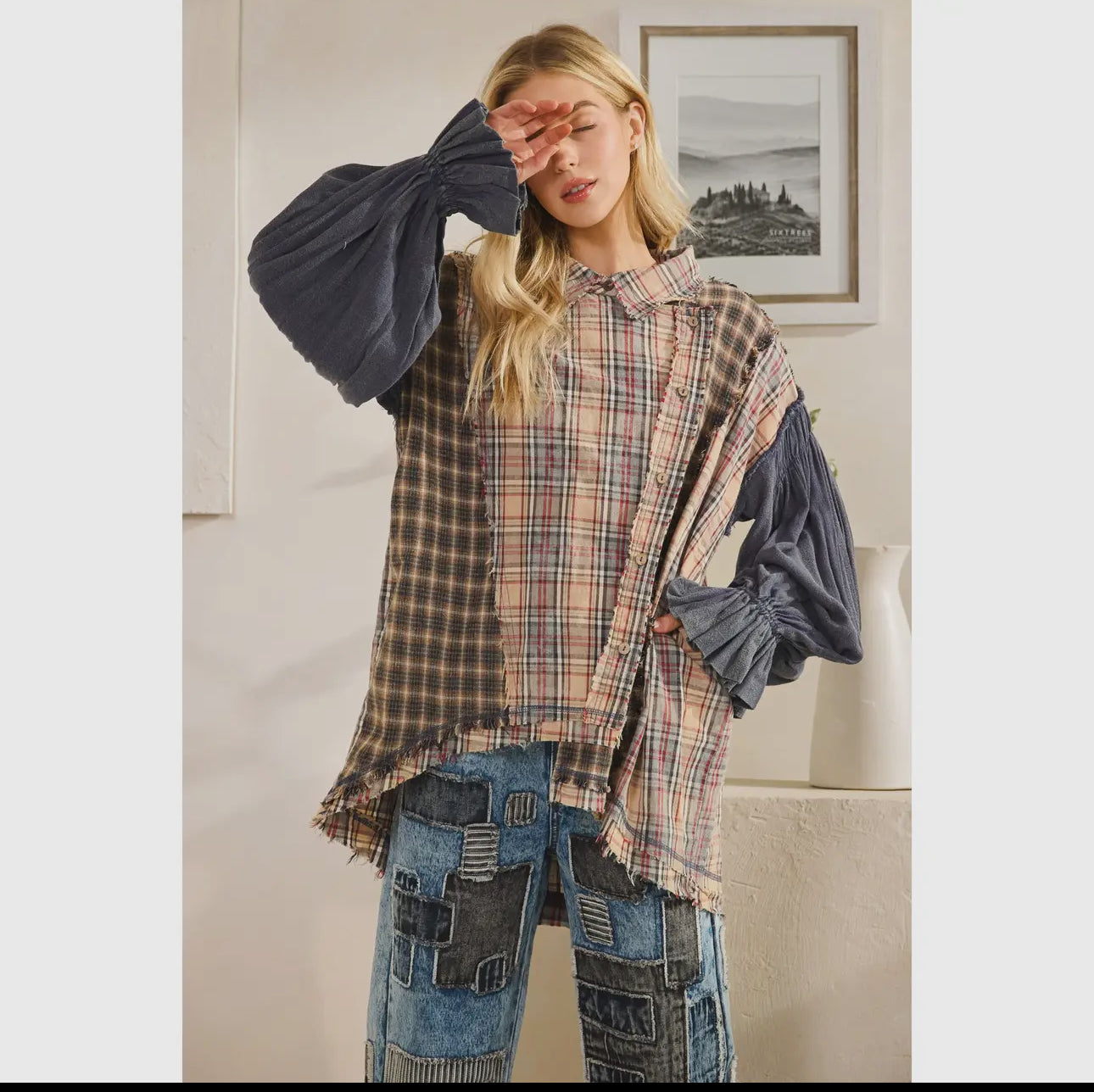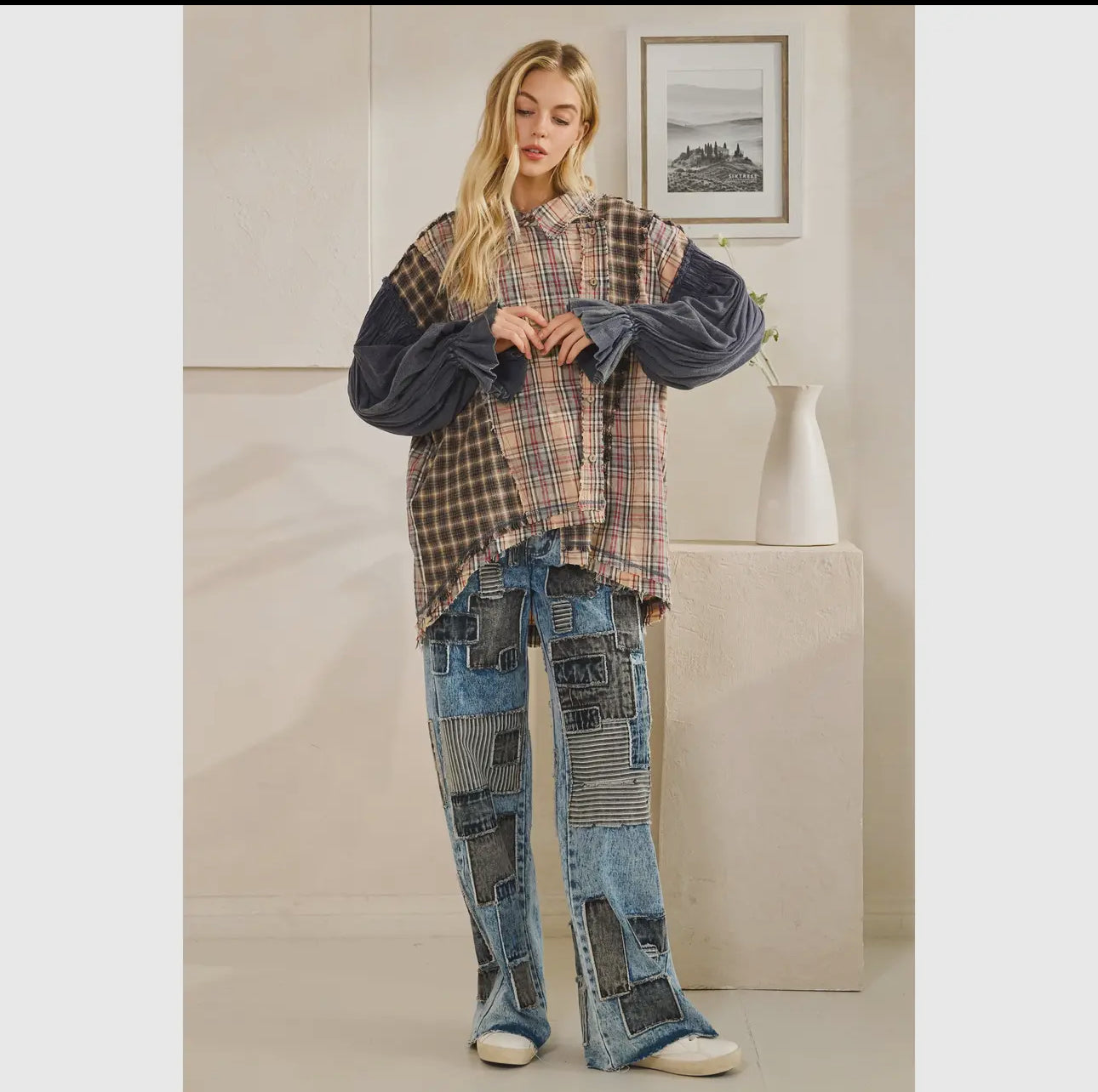 Introducing the Oli & Hali - Navy Washed Plaid Mixed Terry Quilting Detail Pants. Made with soft terry fabric, these pants are perfect for a casual yet stylish look. The quilted detailing adds a touch of sophistication, while the navy plaid pattern offers a timeless appeal. Upgrade your wardrobe now!