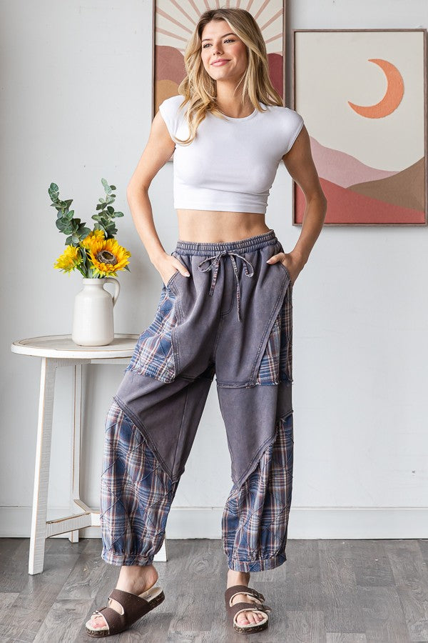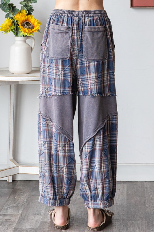 Introducing the Oli & Hali pants that'll have your little one looking effortlessly cool! These relaxed-fit beauties feature a charming washed plaid design mixed with cozy terry fabric and quilting details that add serious style points. The mineral wash gives them that perfectly lived-in vibe, while the soft cotton blend keeps comfort at the top of the priority list. Imported quality you can trust, true to size, and our model rocks the "S" for reference. Pure playfulness meets practicality!