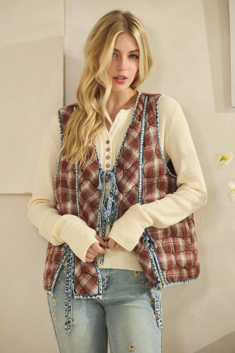 Layer up with effortless style in this charming washed vest from Oli & Hali. Featuring a fun tie-front closure and cozy quilted detailing, it's the perfect piece to throw on for instant character. The mineral wash gives it that perfectly lived-in vibe, while the relaxed fit keeps things comfy and cool. Imported quality you can feel the difference in.
