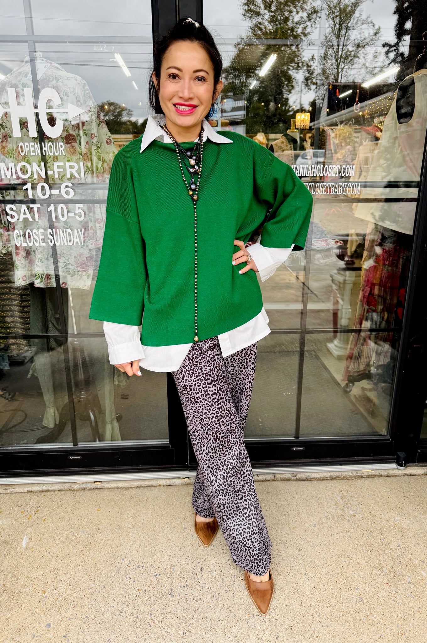 Cozy up in style with this charming mock neck sweater top from Pixi & Ivy! The soft green hue brings a fresh, calming vibe to your wardrobe, while the three-quarter sleeves offer the perfect balance of coverage and breathability. Whether you're layering for fall adventures or keeping it casual, this versatile piece pairs effortlessly with jeans, skirts, or leggings. The mock neck adds a polished touch that works for both relaxed weekends and put-together days. A wardrobe essential that feels as good as it looks!