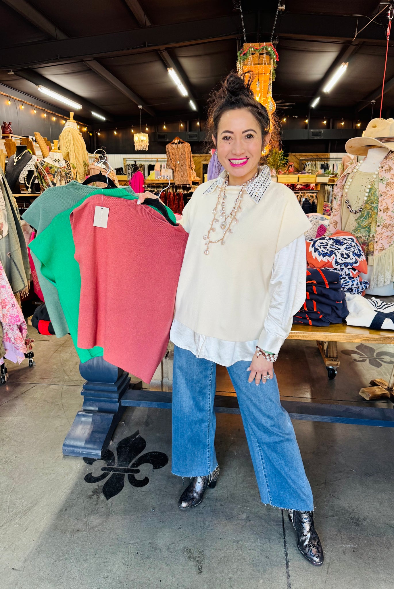 Layer up with effortless style in this charming mock neck sweater vest! The soft, cozy fabric and short sleeves make it perfect for mixing and matching with your favorite tees and long-sleeves. This black essential brings a pop of color and texture to any outfit, whether you're dressing it up or keeping it casual. A versatile piece that feels as good as it looks.