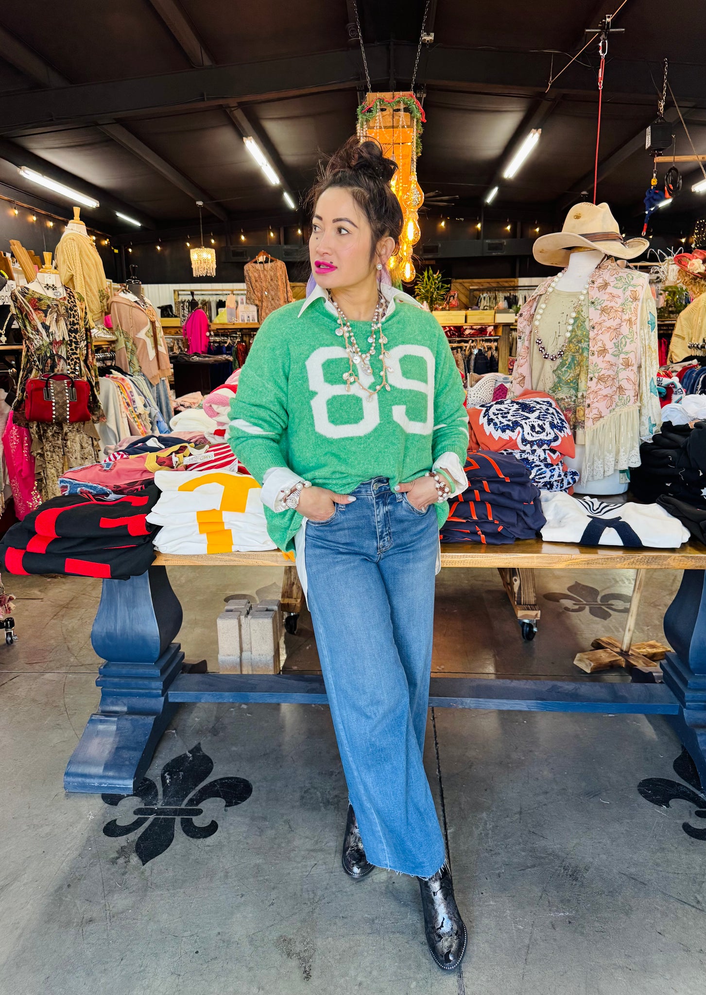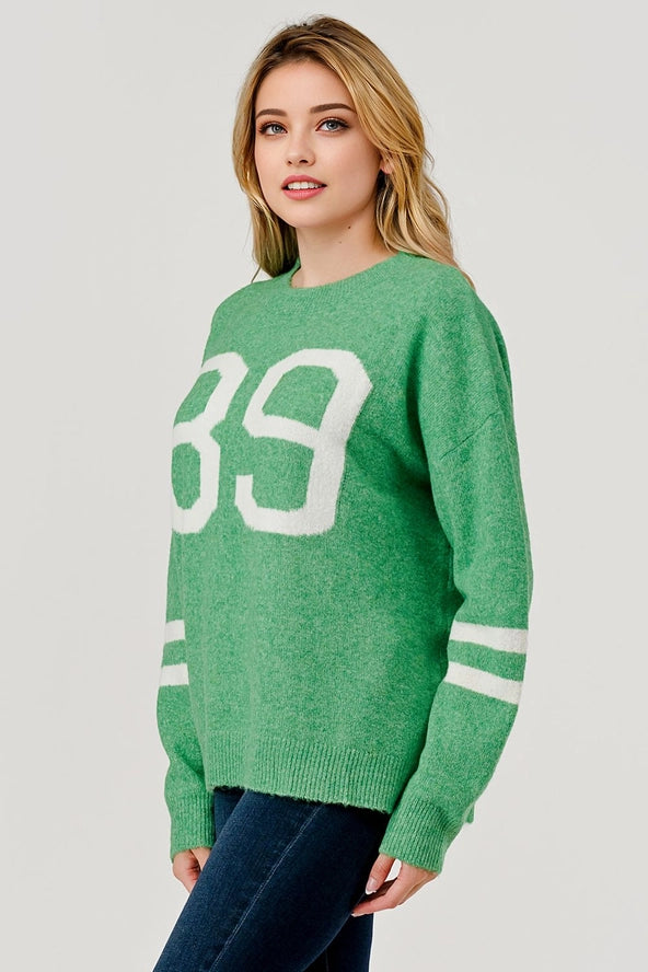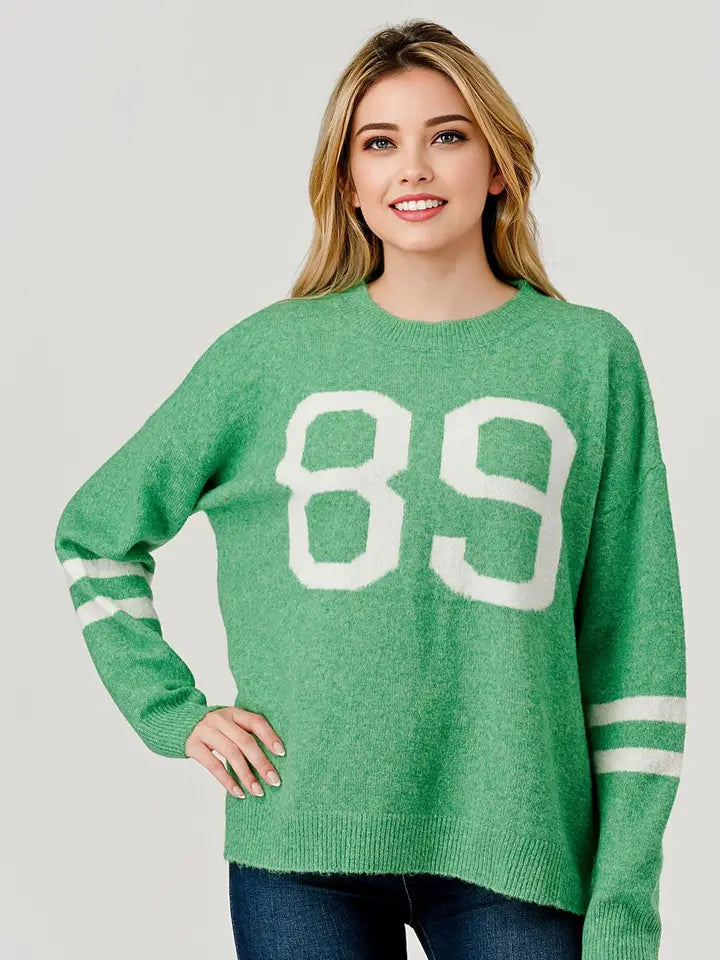 Rock that varsity spirit with this lightweight sweater top from Pixi + Ivy. Featuring a bold number 89 design, this green piece brings retro athletic energy to your everyday look. Perfect for layering or wearing solo, it's the ideal way to channel classic sportswear vibes with a modern twist.
