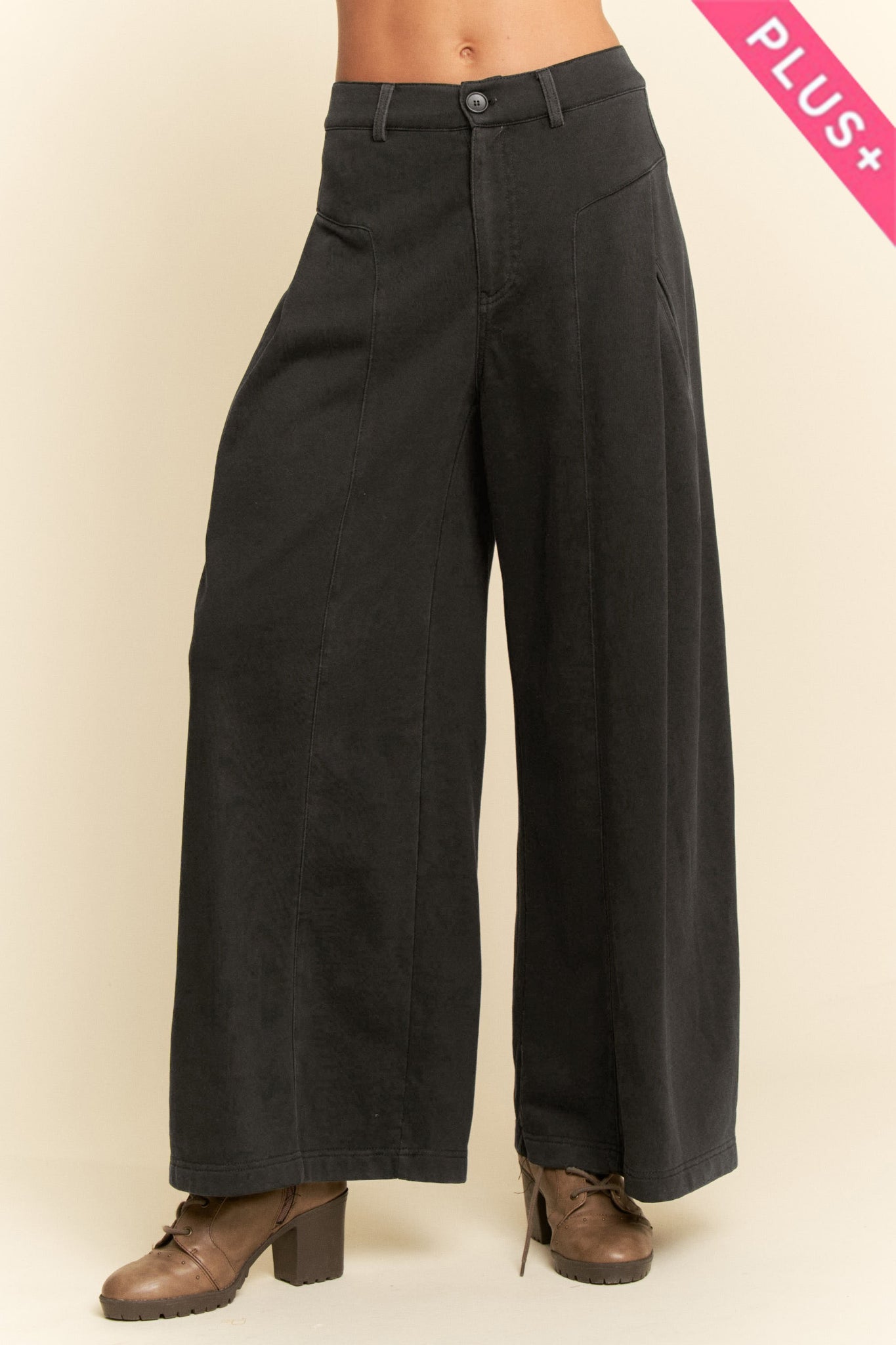 Step up your style game with these high-waisted, wide-leg denim pants featuring a flirty front slit and sharp pleats. The structured waistband with belt loops and handy side pockets mix style with practicality, while the breezy fit lets you move with ease. A must-have that effortlessly switches from casual daytime looks to chic evening vibes—ideal for teaming with your favorite tops and cozy knits.