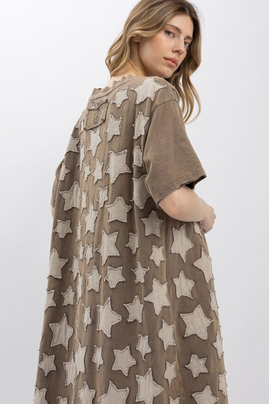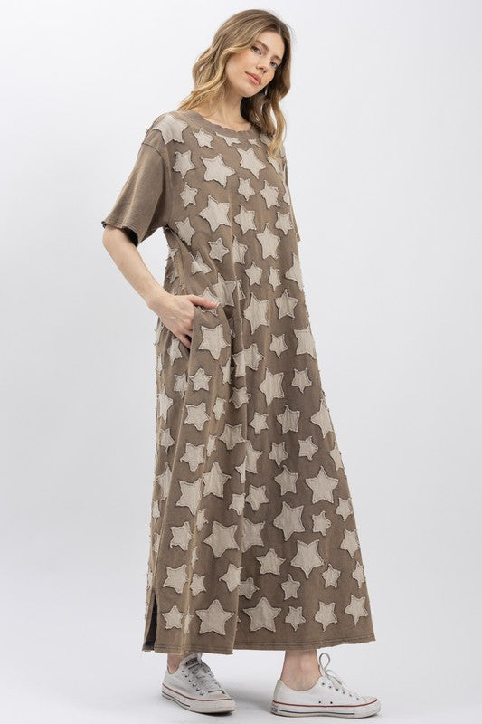 Charcoal dreams meet celestial style in this whimsical long dress! Featuring a delightful star patchwork design across the bodice, it's perfect for little ones who love to shine. The short sleeves keep things breezy and comfortable, while the flowing maxi length adds an elegant touch to any occasion. Whether it's a special celebration or everyday adventures, this dress brings a touch of magic to your wardrobe.