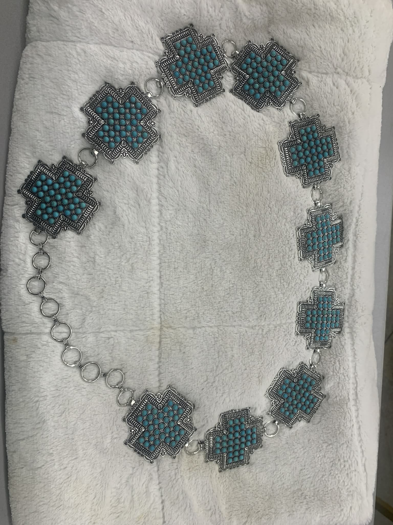 Make a statement with this vibrant turquoise belt! Perfect for adding a pop of color to any outfit, this cross-detail piece brings playful flair to your everyday look. Whether you're dressing up a casual ensemble or cinching a dress, this eye-catching accessory delivers instant style and personality. A fun, versatile essential for anyone who loves bold color choices.